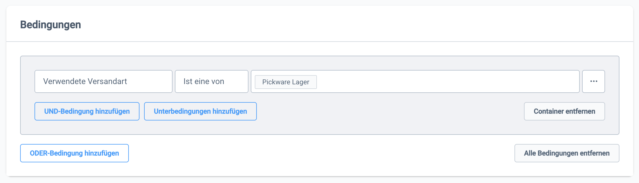 Klicke auf Bedingungen durchsuchen, um eine Bedingung auszuwählen. Je nach Bedingung stehen dir unterschiedliche Operatoren zur Verfügung. So kannst du individuelle Regeln flexibel abbilden.
