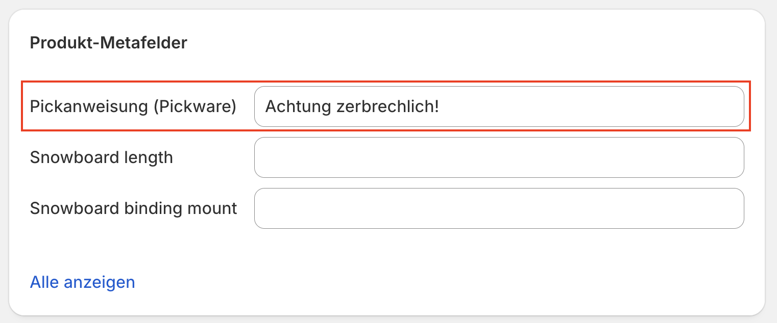 Hier findest du das Feld in Shopify Hier findest du das Feld in Pickware