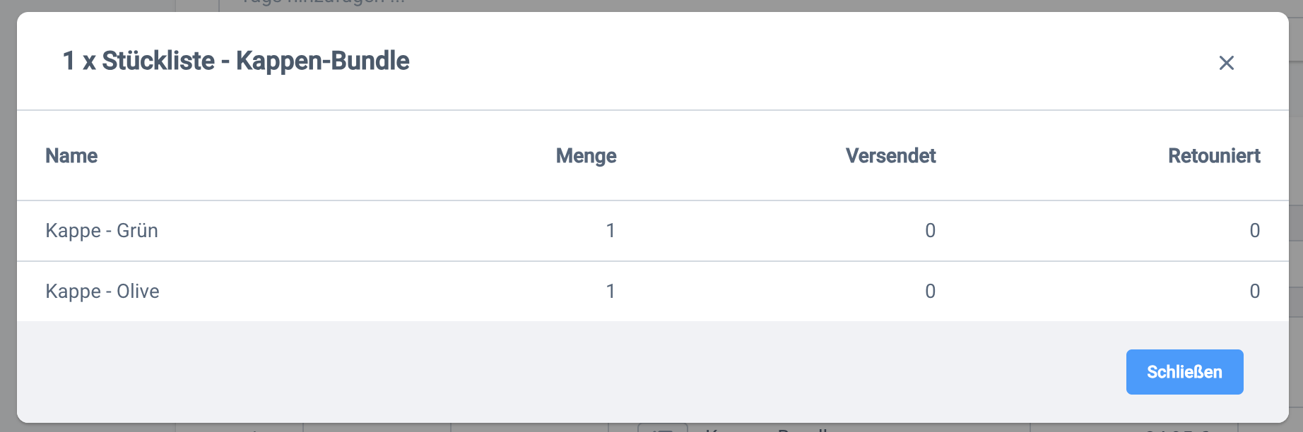 Erstellst du eine Retoure für eine Bundle-Bestellung über die Pickware-Admin, dann werden alle Produkte mit einem Präfix gekennzeichnet, die Teil eines Bundles sind. Am WMS werden diese Produkte aktuell nicht gekennzeichnet.