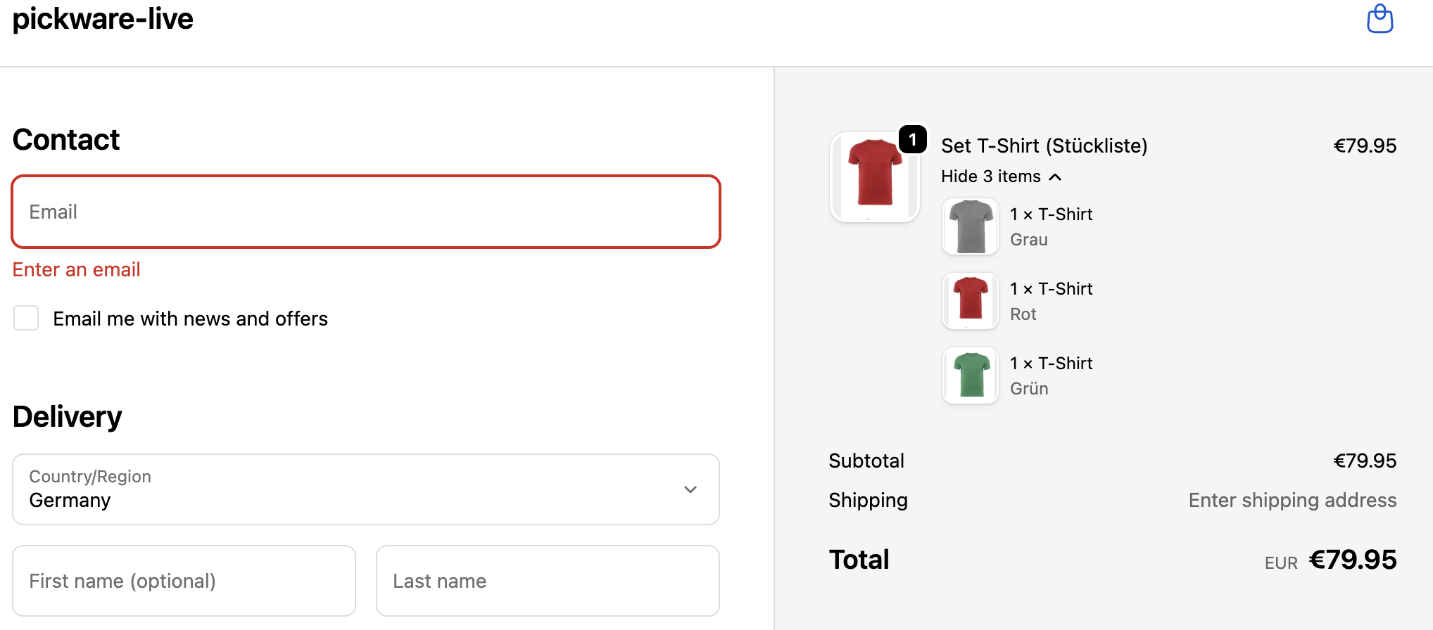 Deinen Kunden wird im Frontend ebenfalls ein einzelnes Produkt im Listing angezeigt. Im Checkout sehen sie allerdings, welche Produkte zu einem Bundle zugeordnet sind.