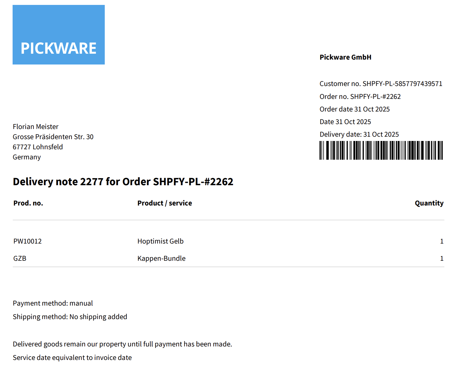 Auf den weiteren Bestelldokumenten (Lieferschein, Rechnung) erscheint nur das Bundle-Parent, also das Produkt, das der Kunde tatsächlich bestellt hat.