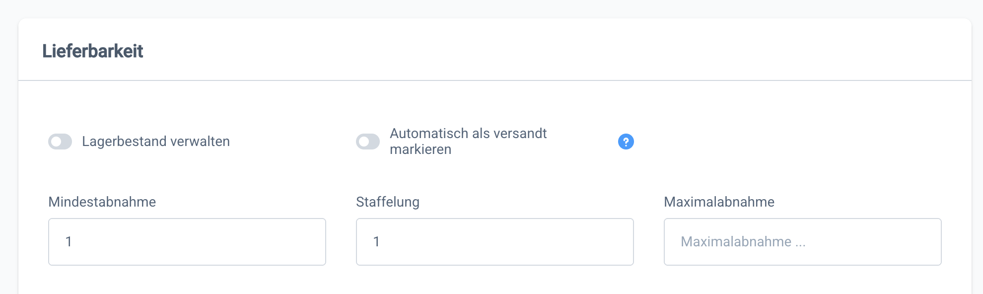In Pickware sollte die Lagerbestandsverwaltung von Bundle-Parents daher nicht aktiviert sein, damit der Bestand dieser Produkte in Shopify nicht überschrieben wird. Mit dem Eingang der ersten Bestellung eines Bundle-Parents wird die Lagerbestandsverwaltung in Pickware automatisch deaktiviert. Alternativ kannst du dies bereits vorab manuell im jeweiligen Produkt in Pickware unter Allgemein → Lieferbarkeit einstellen.