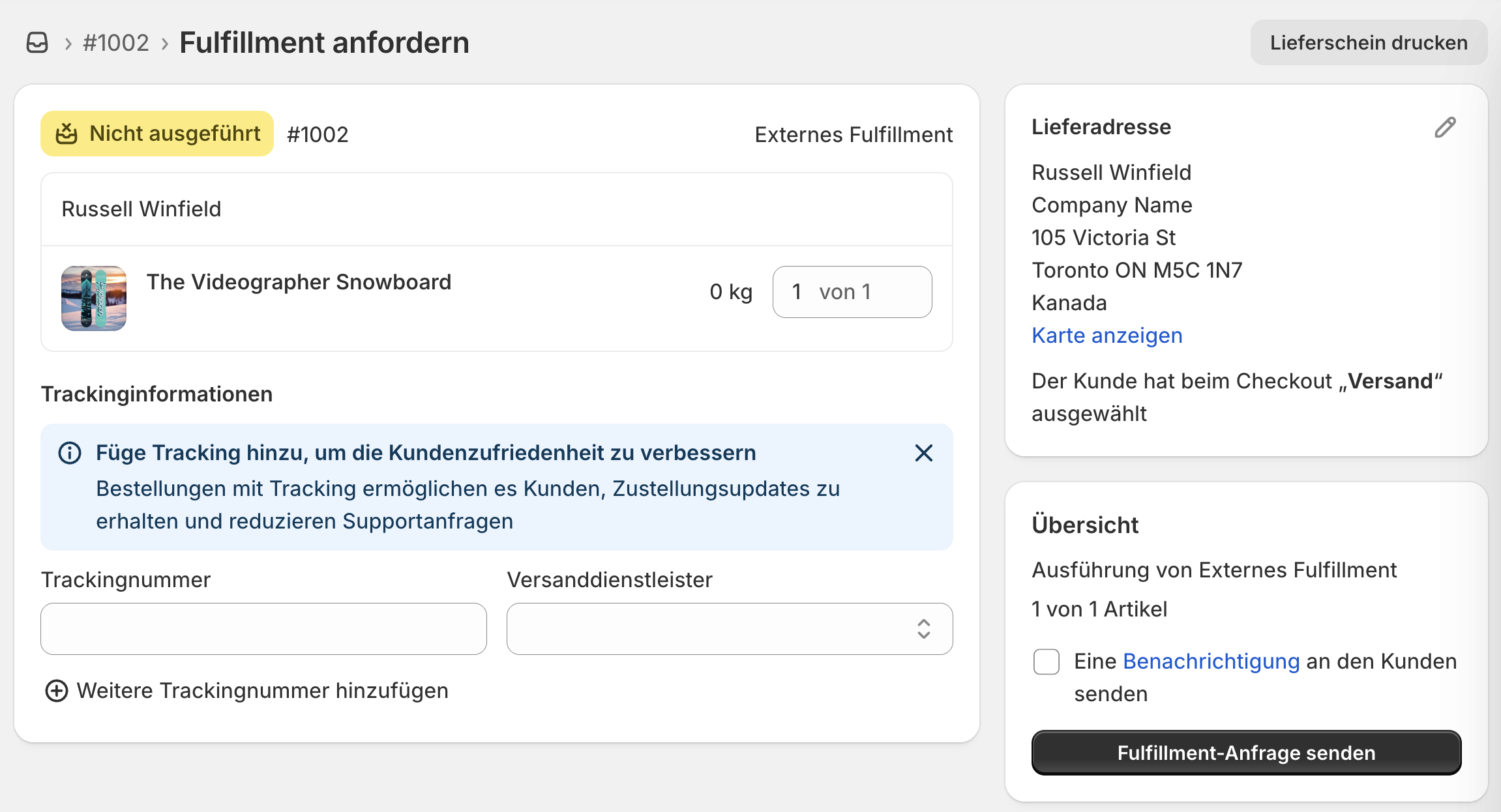 Wie läuft das externe Fulfillment mit Shopify ab?
