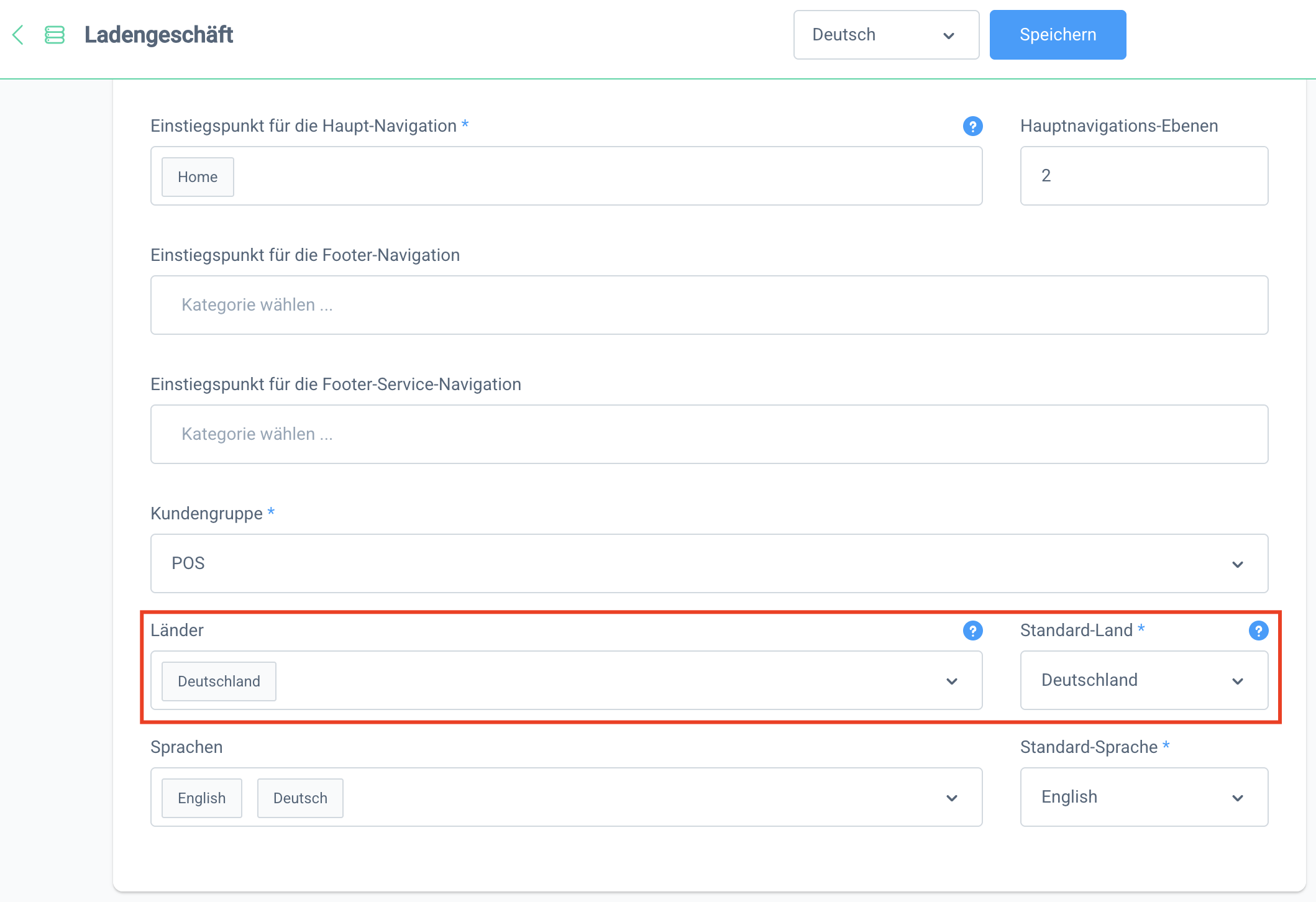 Lege auf diese Weise je einen Verkaufskanal für Deutschland und Österreich an. In den jeweiligen Verkaufskanaleinstellungen muss schließlich noch das jeweilige Land hinterlegt werden.