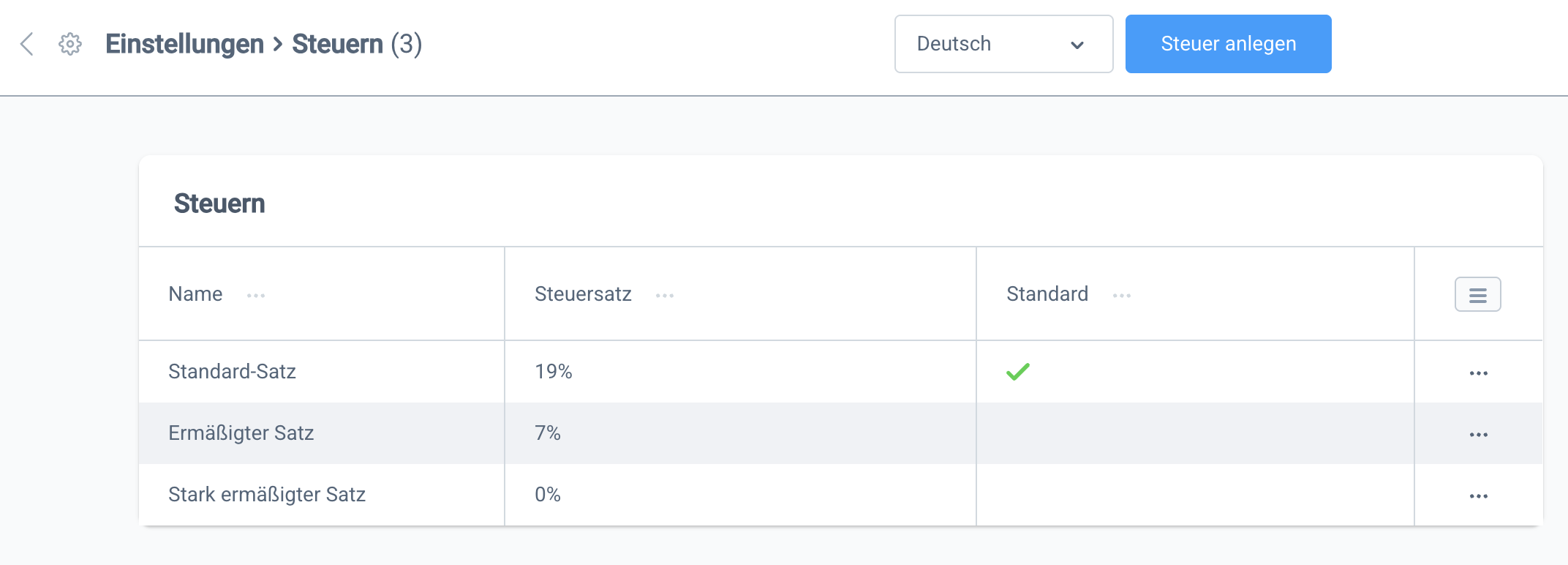 Steuersätze konfigurieren
