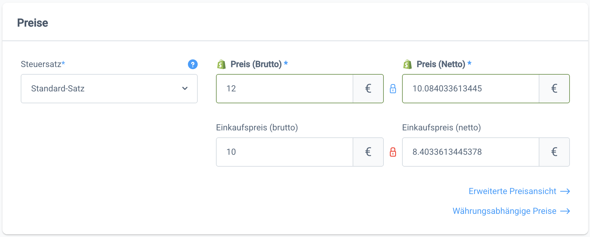 Am POS zahlt der Kunde unabhängig von seinem Standort zwar ebenfalls den hier hinterlegten Brutto-Preis. Allerdings wird der zugehörige Netto-Preis anhand des jeweils geltenden Ländersteuersatzes errechnet und weicht somit ggf. von dem in der Pickware Admin angezeigten Preis ab.