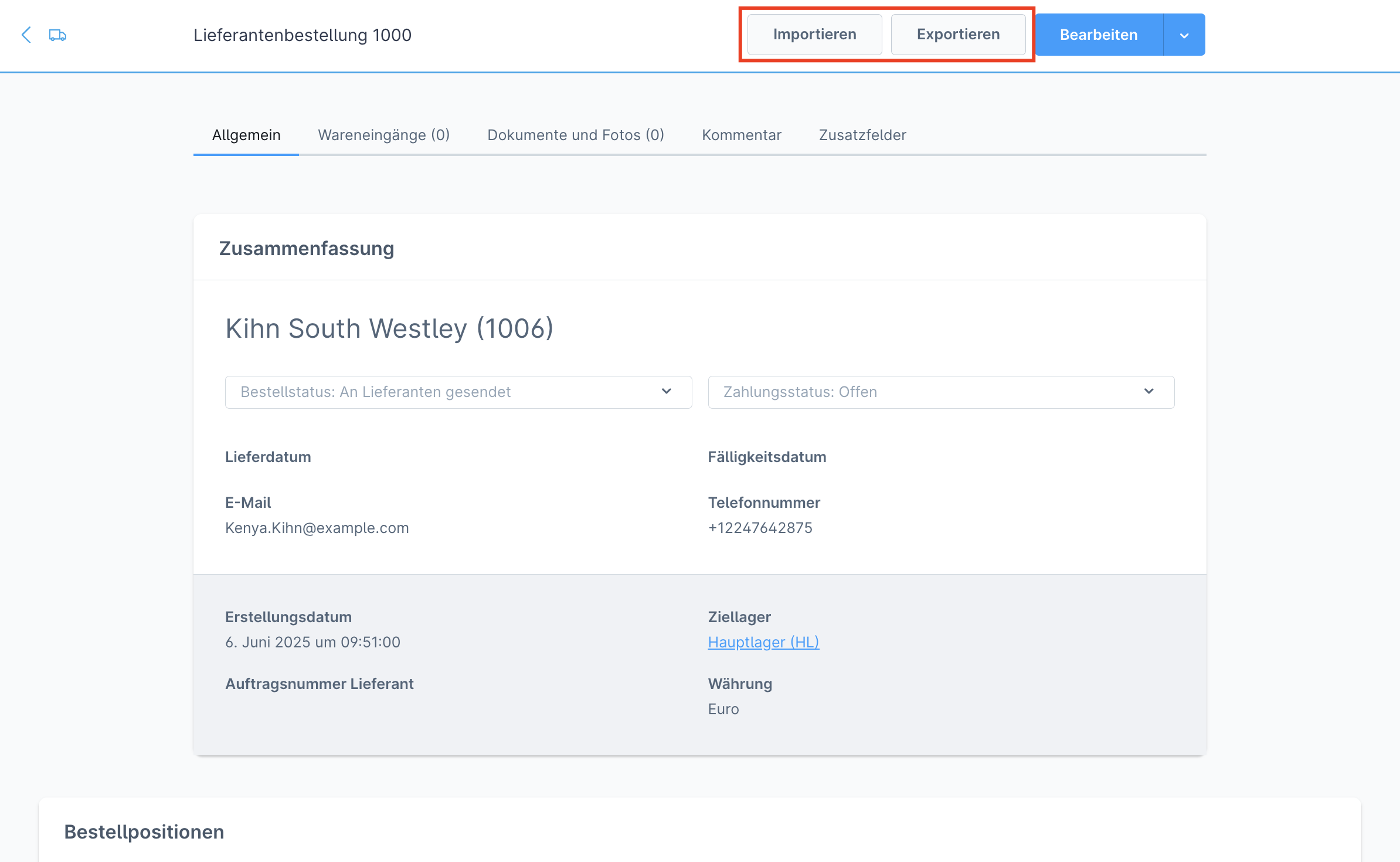 Nachdem die Lieferantenbestellung gespeichert wurde, kannst du mit dem Import fortfahren.