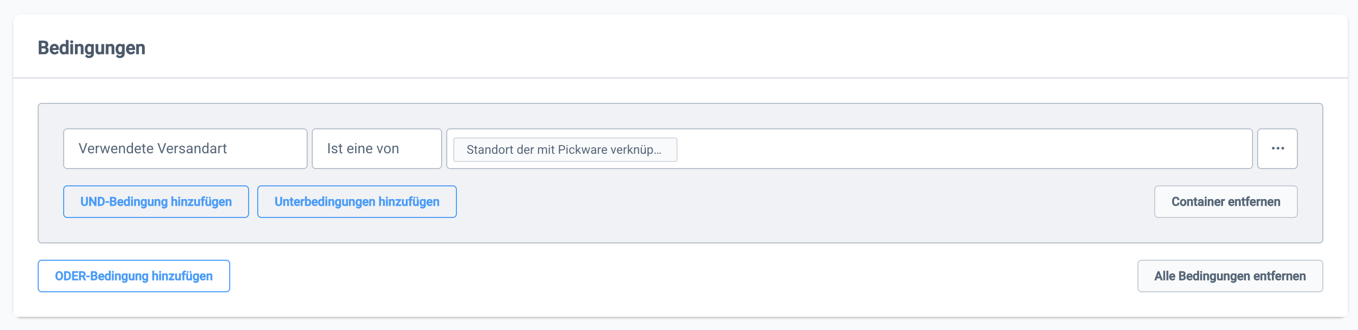Im nächsten Schritt benötigen wir eine Regel, um alle Click & Collect Bestellungen zu filtern. Gehe dazu auf Einstellungen → Shop → Rule Builder und klicke auf Regel erstellen. Füge dort folgende Bedingung hinzu, wobei du als Zahlungsart deine Click & Collect Zahlungsart auswählst: