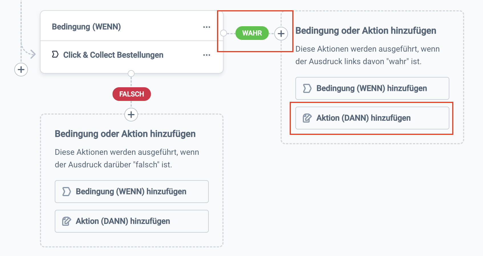 | Füge nun für den Wahrheitspfad eine Aktion hinzu. |