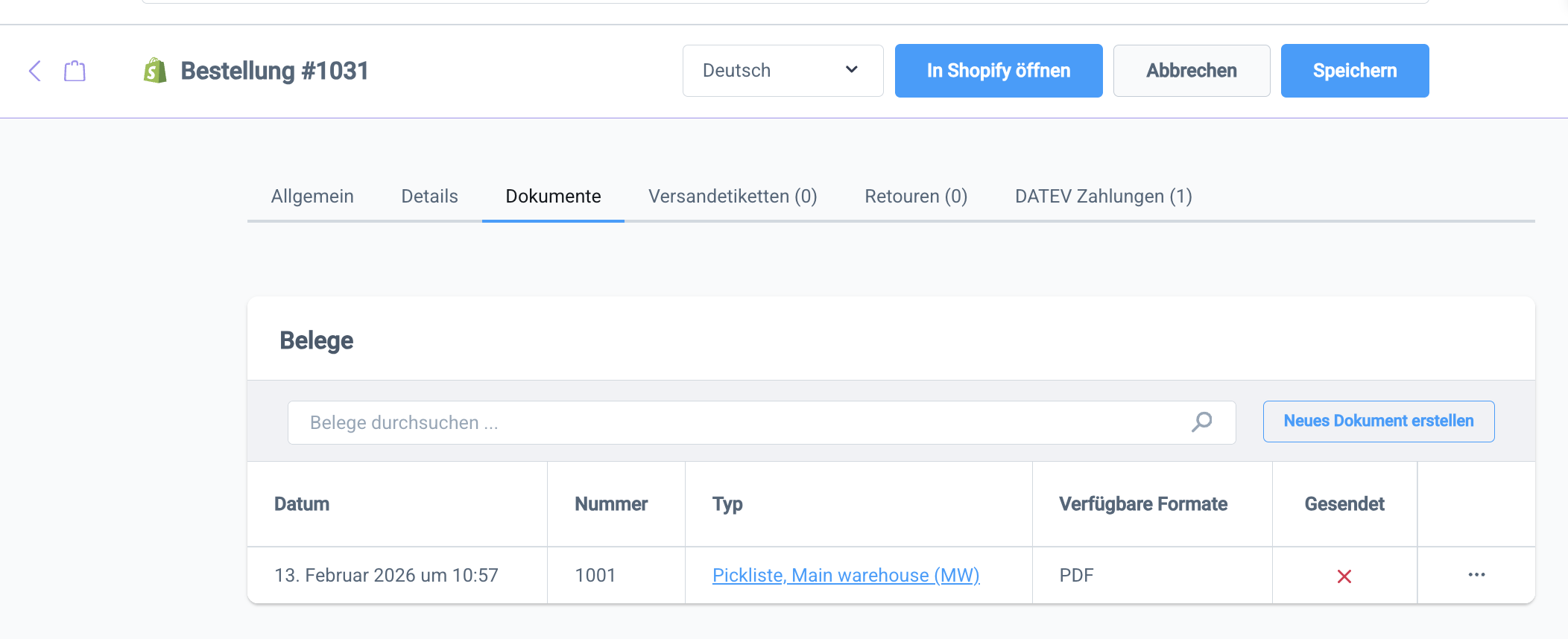 | Sobald eine bezahlte Bestellung eingeht, findest du nun die Pickliste unmittelbar danach in deiner Pickware Admin. |