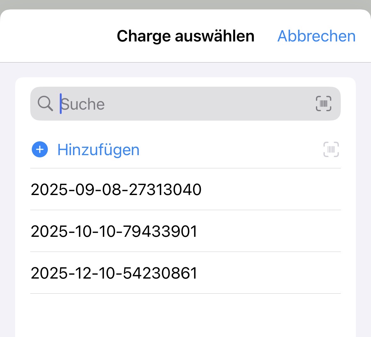 Chargennummern und MHDs können bequem per Scanner erfasst oder manuell eingetragen werden.